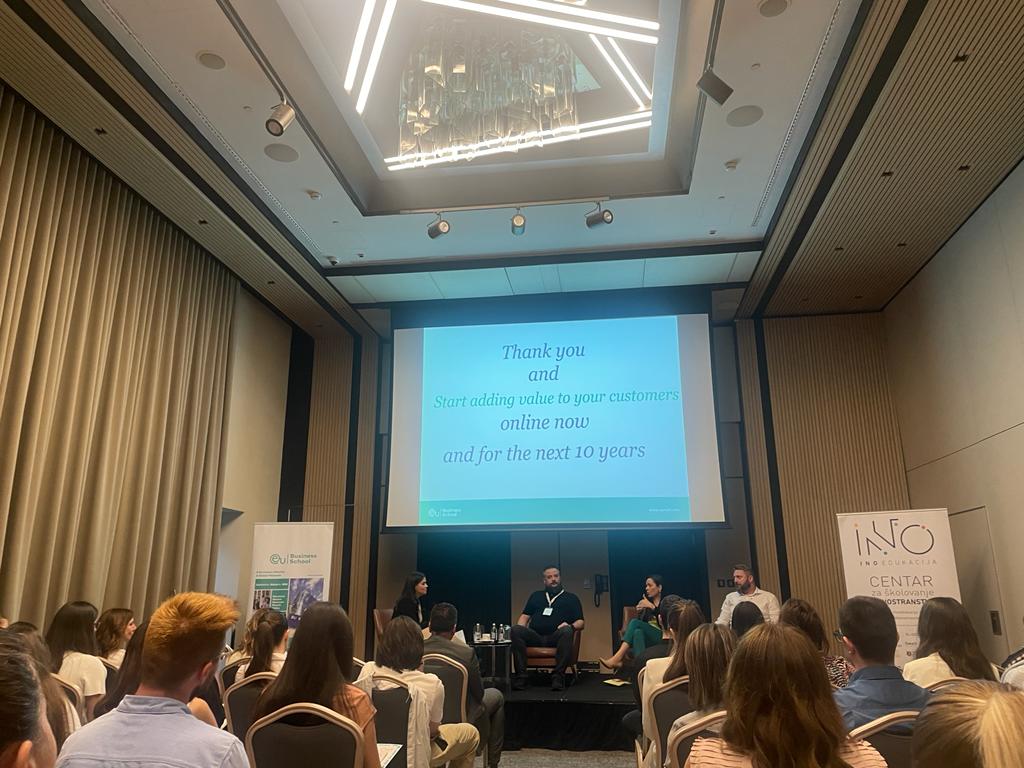 The famous international faculty of business, EU Business School, in cooperation with INO education, organized a conference that dealt with the topic of making money online in the next 10 years. On this occasion, a special lecture was held by Professor Petros Bouchoris, an expert in international e-commerce, who gave a key note lecture! The lecture was followed by a panel discussion in which Mihailo Ponjavic, Chief E-commerce Officer at Tehnomanija, Ljiljana Ahmetovic, Chief Executive Officer at Shoppster Serbia and Marko Ilic, Head of Product at Ananas, participated.